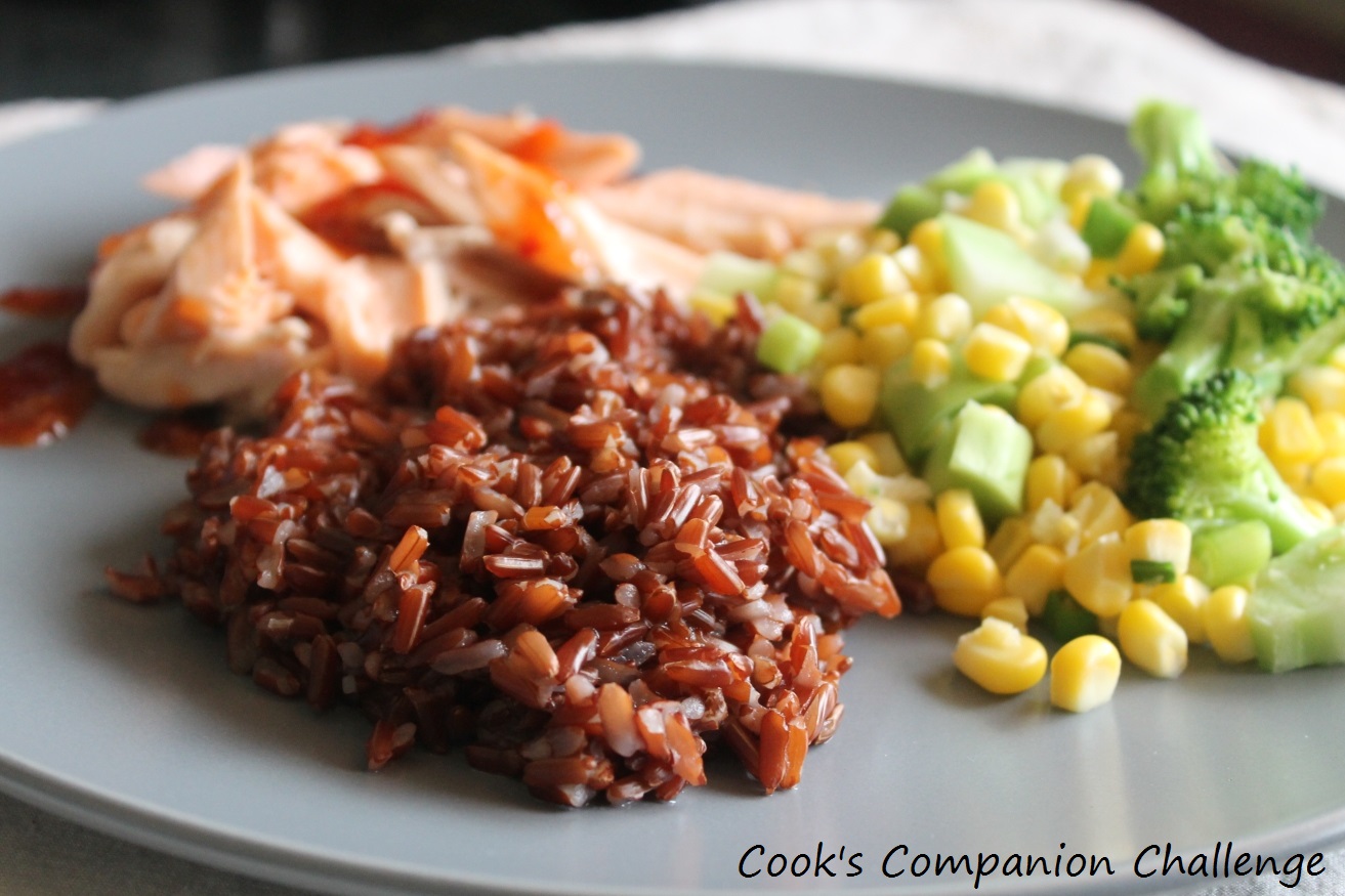 Apparently when you are only semi-listening, red rice vinegar sounds a lot like red rice...and so that's what he came home with! No matter, we had a lovely meal that evening with red rice the star, supported by steamed trout and steamed veg.